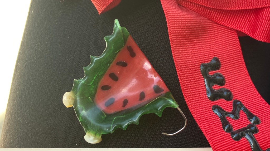 When I reached my middle school years and it became time to sort out my mouth, we learned that I was missing my adult lateral incisors (yes, I had to look that up), which are on either side of my front teeth. It’s genetic and generally, but not always, skips a generation. The first set of braces I had were quite shiny, covered in red and green rubber bands (Merry Christmas!) and had two pontics (AKA fake teeth) attached to the wires. I wore these with no problem and then moved into a retainer with the attached teeth (see below).